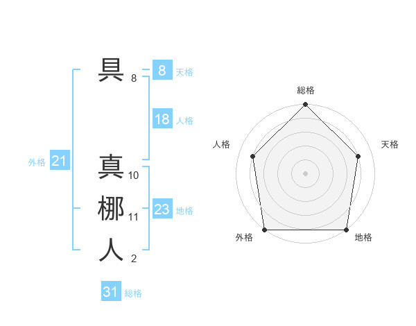具 真梛人さんの総格は31画の5点!