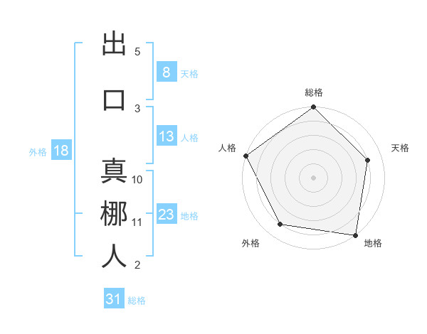 出口 真梛人さんを姓名の画数から五運を鑑定