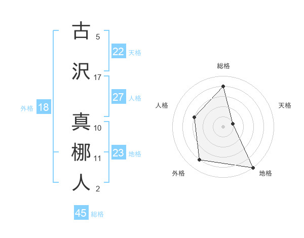 古沢 真梛人さんの総格は45画の4点!