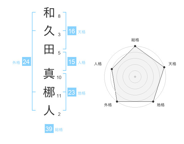 和久田 真梛人さんの外格は24画の5点!