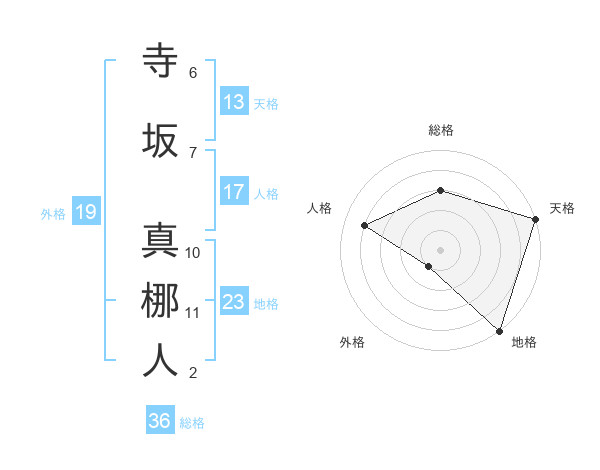 寺坂 真梛人さんの天格は13画の5点!