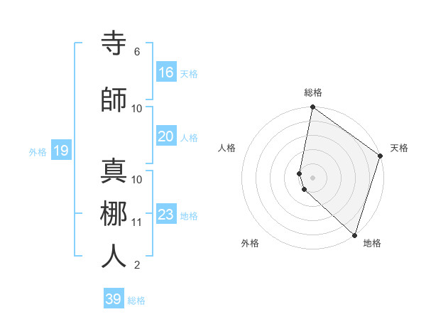 寺師 真梛人さんの総格は39画の5点!