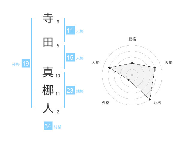 寺田 真梛人さんを姓名の画数から五運を鑑定