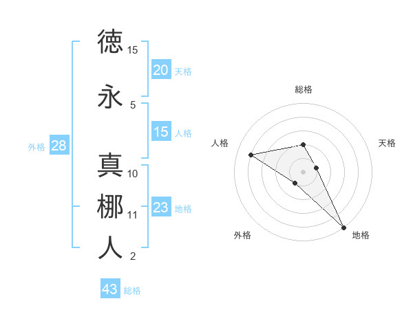 徳永 真梛人さんの地格は23画の5点!