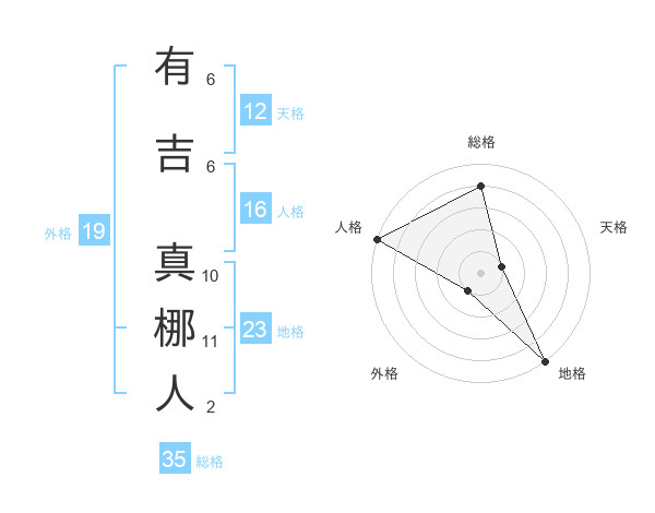 有吉 真梛人さんを姓名の画数から五運を鑑定