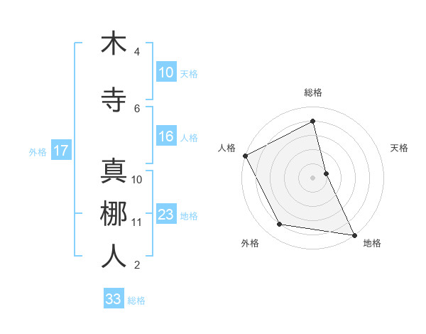 木寺 真梛人さんを姓名の画数から五運を鑑定