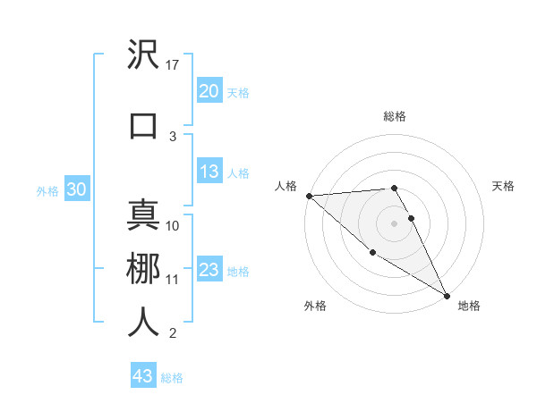 沢口 真梛人さんを姓名の画数から五運を鑑定
