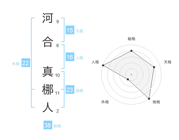 河合 真梛人さんの総格は38画の4点!