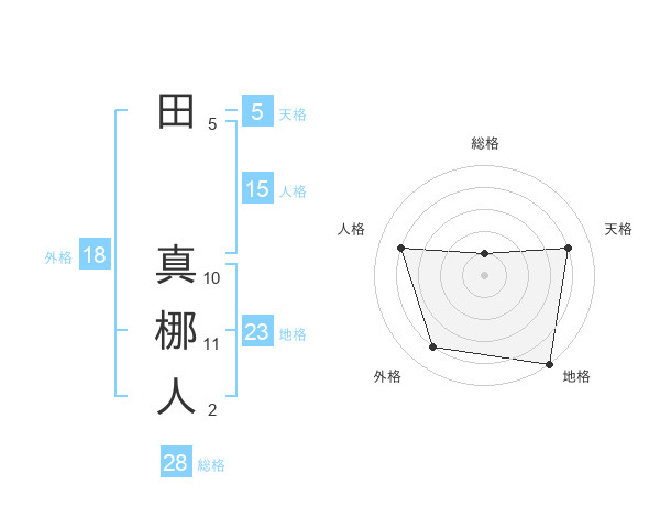 田 真梛人さんの総格は28画の1点!