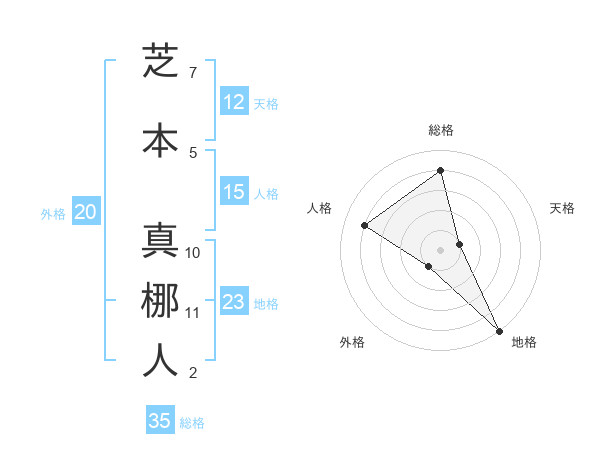 芝本 真梛人さんの総格は35画の4点!