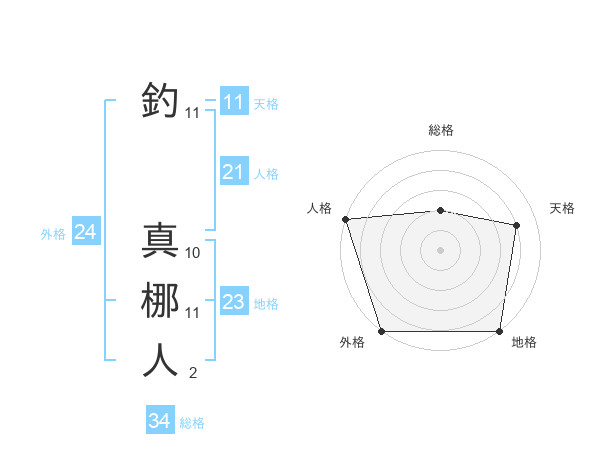 釣 真梛人さんの外格は24画の5点!