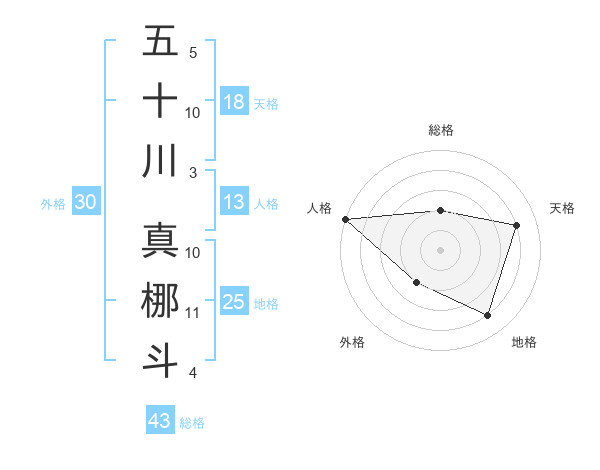 五十川 真梛斗さんを姓名の画数から五運を鑑定