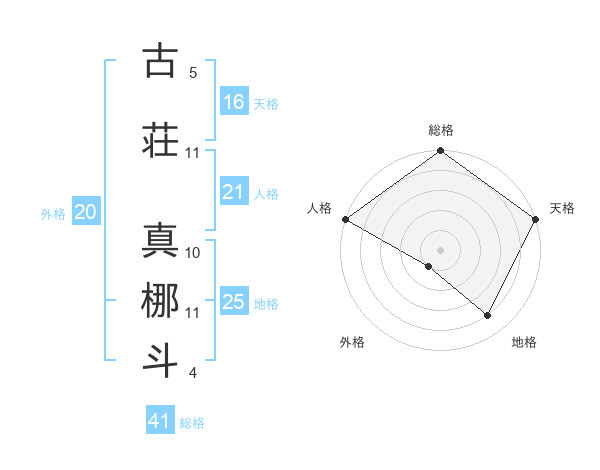 古荘 真梛斗さんの総格は41画の5点!