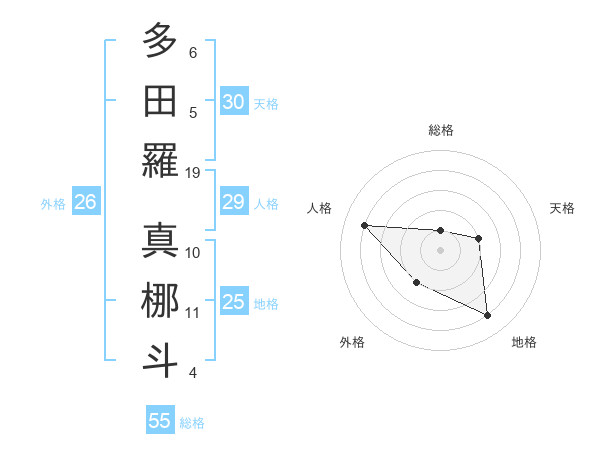 多田羅 真梛斗さんを姓名の画数から五運を鑑定