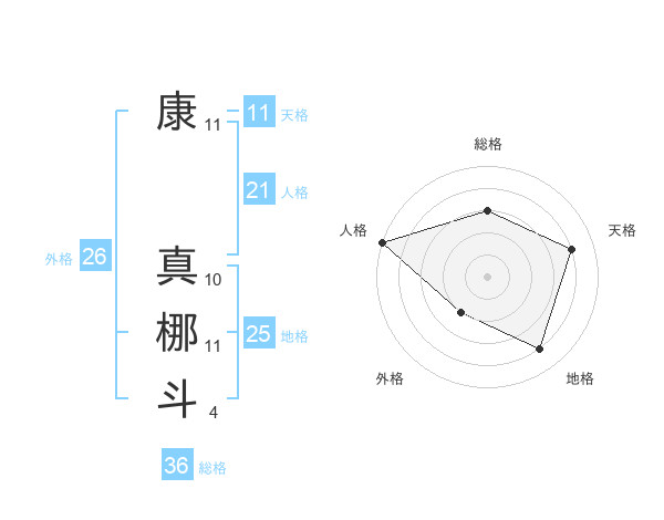 康 真梛斗さんの天格は11画の4点!
