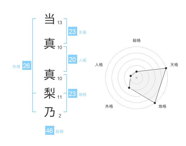当真 真梨乃さんの天格は23画の5点!