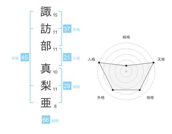 諏訪部 真梨亜さんの地格は29画の4点!