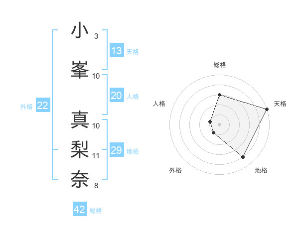 小峯 真梨奈さんを姓名の画数から五運を鑑定