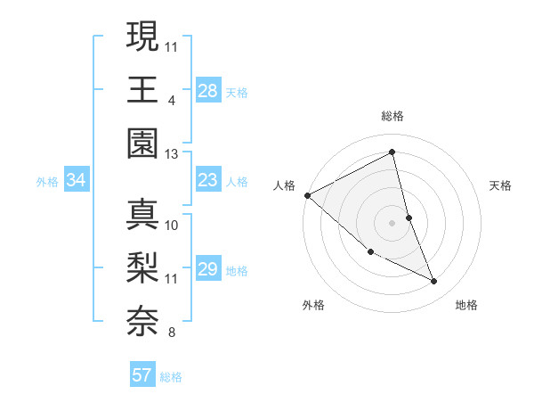 現王園 真梨奈さんを姓名の画数から五運を鑑定