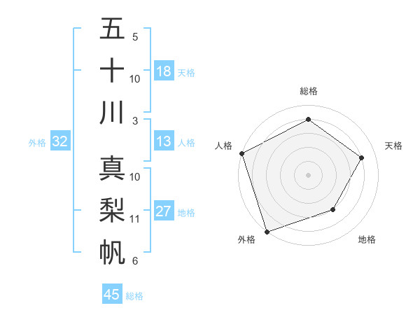 五十川 真梨帆さんを姓名の画数から五運を鑑定