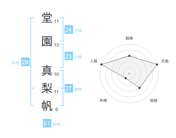 堂園 真梨帆さんを姓名の画数から五運を鑑定