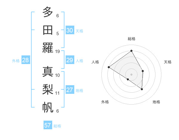 多田羅 真梨帆さんを姓名の画数から五運を鑑定