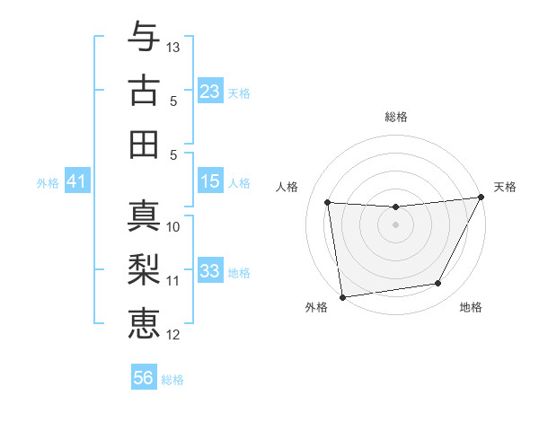 与古田 真梨恵さんを姓名の画数から五運を鑑定
