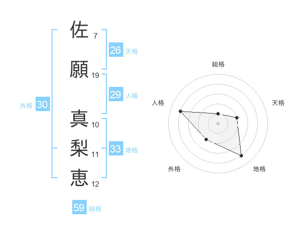 佐願 真梨恵さんを姓名の画数から五運を鑑定