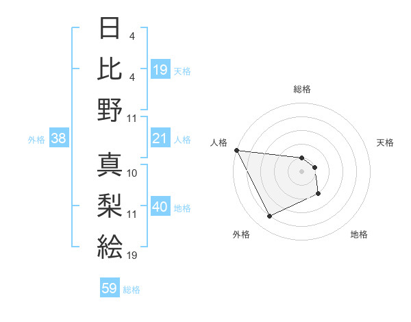 日比野 真梨絵さんを姓名の画数から五運を鑑定