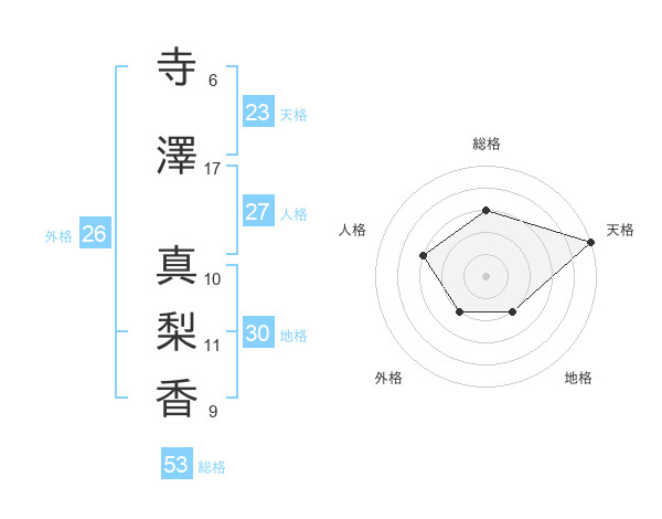 寺澤 真梨香さんを姓名の画数から五運を鑑定