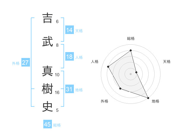 吉武 真樹史さんの総格は45画の4点!
