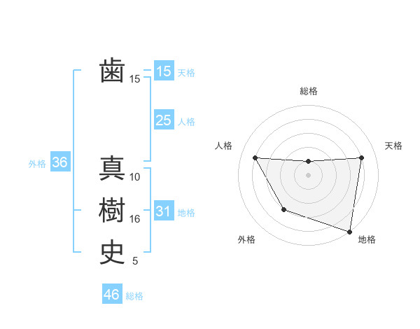 歯 真樹史さんの天格は15画の4点!