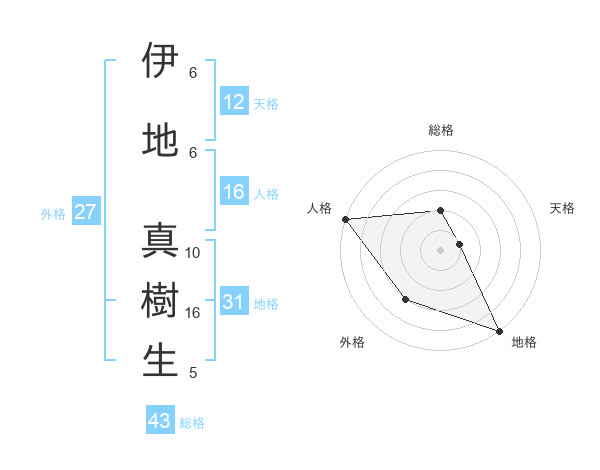 伊地 真樹生さんを姓名の画数から五運を鑑定