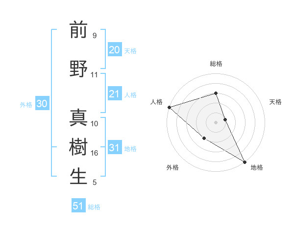 前野 真樹生さんの総格は51画の3点!