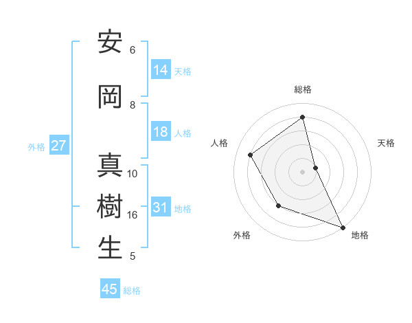 安岡 真樹生さんを姓名の画数から五運を鑑定