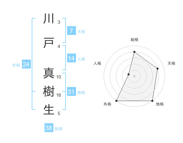 川戸 真樹生さんを姓名の画数から五運を鑑定