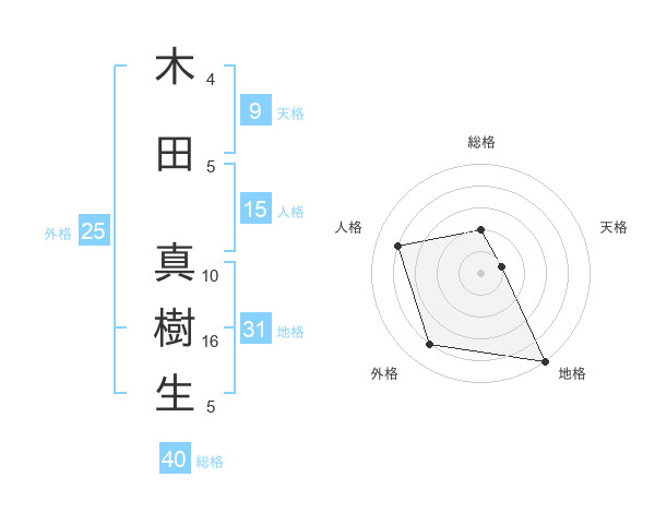 木田 真樹生さんを姓名の画数から五運を鑑定