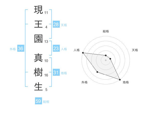 現王園 真樹生さんの総格は59画の1点!