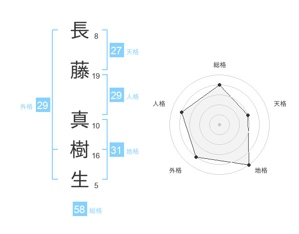 長藤 真樹生さんの総格は58画の4点!