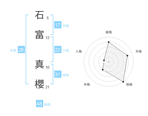 石富 真櫻さんを姓名の画数から五運を鑑定