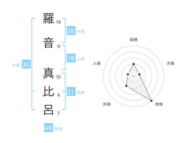 羅音 真比呂さんの総格は49画の2点!