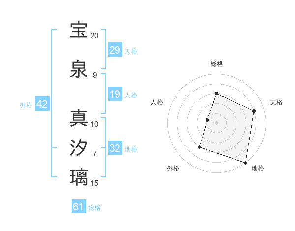 宝泉 真汐璃さんを姓名の画数から五運を鑑定