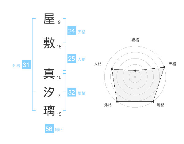 屋敷 真汐璃さんを姓名の画数から五運を鑑定