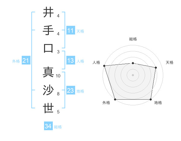 井手口 真沙世さんを姓名の画数から五運を鑑定