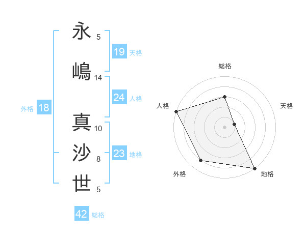 永嶋 真沙世さんを姓名の画数から五運を鑑定