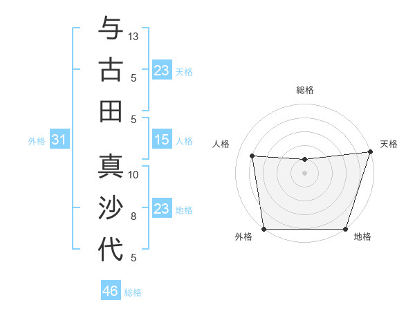 与古田 真沙代さんを姓名の画数から五運を鑑定