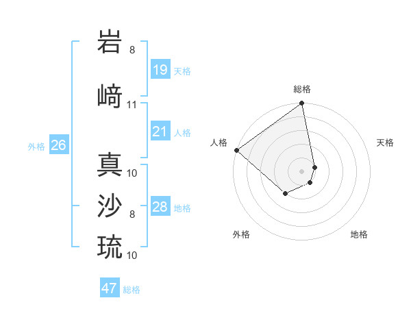岩﨑 真沙琉さんの総格は47画の5点!