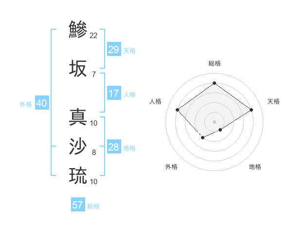 鰺坂 真沙琉さんの総格は57画の4点!