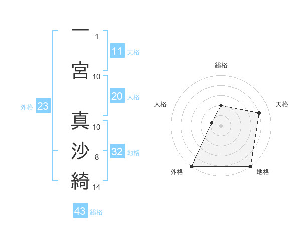一宮 真沙綺さんを姓名の画数から五運を鑑定