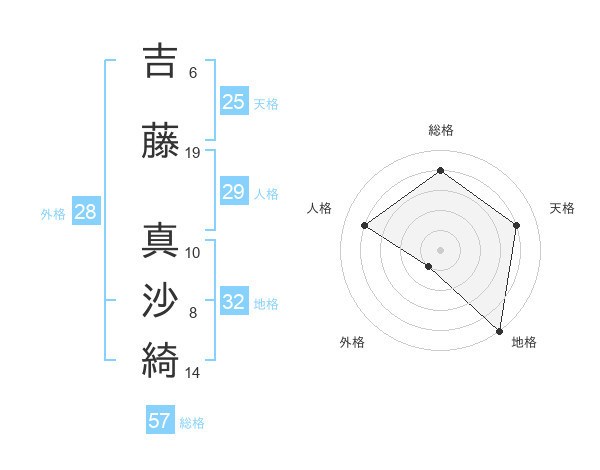 吉藤 真沙綺さんの総格は57画の4点!